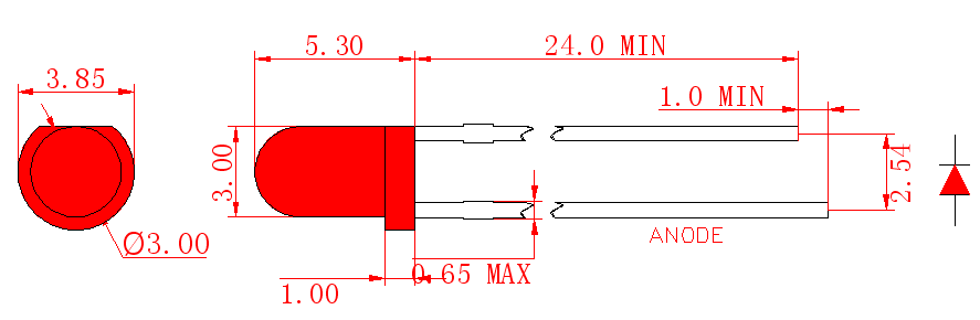 3 mm rote runde LED-Lampe (LL30SR1D50-60)