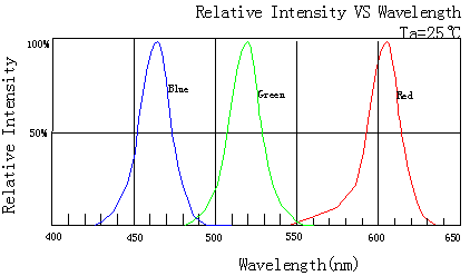 Dominante Wellenlänge Rot (619–624 nm) Grün (520–535 nm) Blau (460–475 nm)