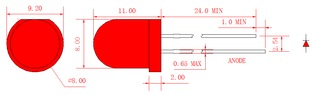 8 mm rote runde LED-Lampe (LL80UDR2D40-150)